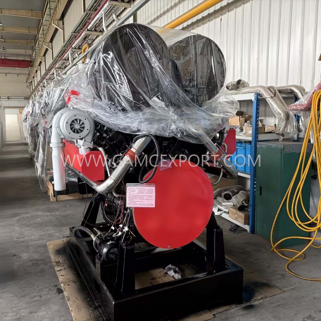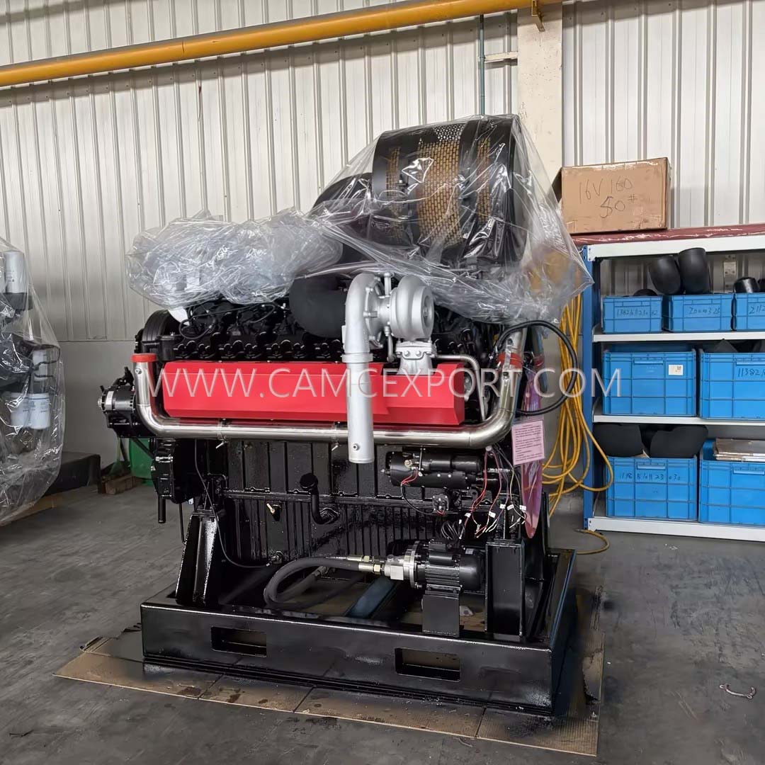 Дизельный двигатель CAMC WP1300 — это мощное и высокопроизводительное основное силовое оборудование, специально разработанное для сценариев с экстремальными требованиями к мощности, таких как движение больших кораблей, тяжелые инженерные работы и большие генераторные установки. Благодаря передовым технологиям, высокой мощности и надежному качеству он обеспечивает эффективную и надежную поддержку электропитания для различного крупного оборудования, демонстрируя технологическое накопление и мощь CAMC в области дизельной энергетики. Двигатель имеет четырехтактную конструкцию камеры сгорания с водяным охлаждением и непосредственным впрыском топлива в сочетании с системой Common Rail высокого давления с электронным управлением. Впрыск топлива является точным и контролируемым, что значительно оптимизирует эффективность сгорания и обеспечивает двойной прорыв: высокую мощность и энергосбережение, а также снижение потребления; Оснащен турбонаддувом выхлопных газов и системой охлаждения воздух-воздух, эффективно повышающей эффективность впуска, точно регулирующей рабочую температуру двигателя, обеспечивающей непрерывную и стабильную работу в условиях высоких нагрузок и предотвращающую опасность перегрева; Благодаря V-образной 12-цилиндровой компоновке с рабочим объемом до 35,9 л, номинальной мощностью до 1308 кВт и стабильной скоростью 1500 об/мин, выходная мощность является сильной и стабильной, что позволяет легко справляться с потребностями высокой интенсивности и длительной непрерывной работы. В то же время он оснащен электрической системой запуска 24 В, которая может запускаться быстро и удобно и адаптироваться к потребностям запуска в различных сложных и суровых условиях работы. Общая структурная конструкция является научно обоснованной и компактной, сочетающей в себе отличную производительность и удобство установки, а также широко адаптируемую к потребностям высокой мощности в различных областях.
